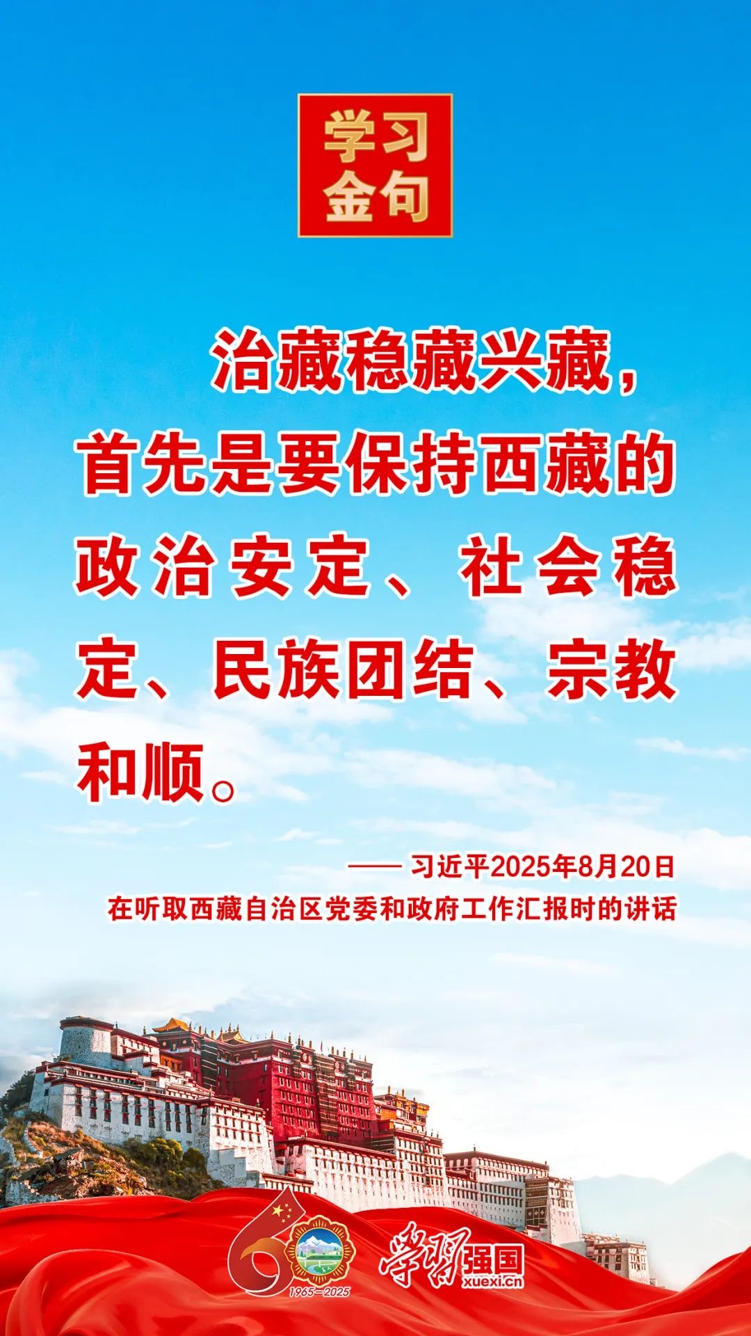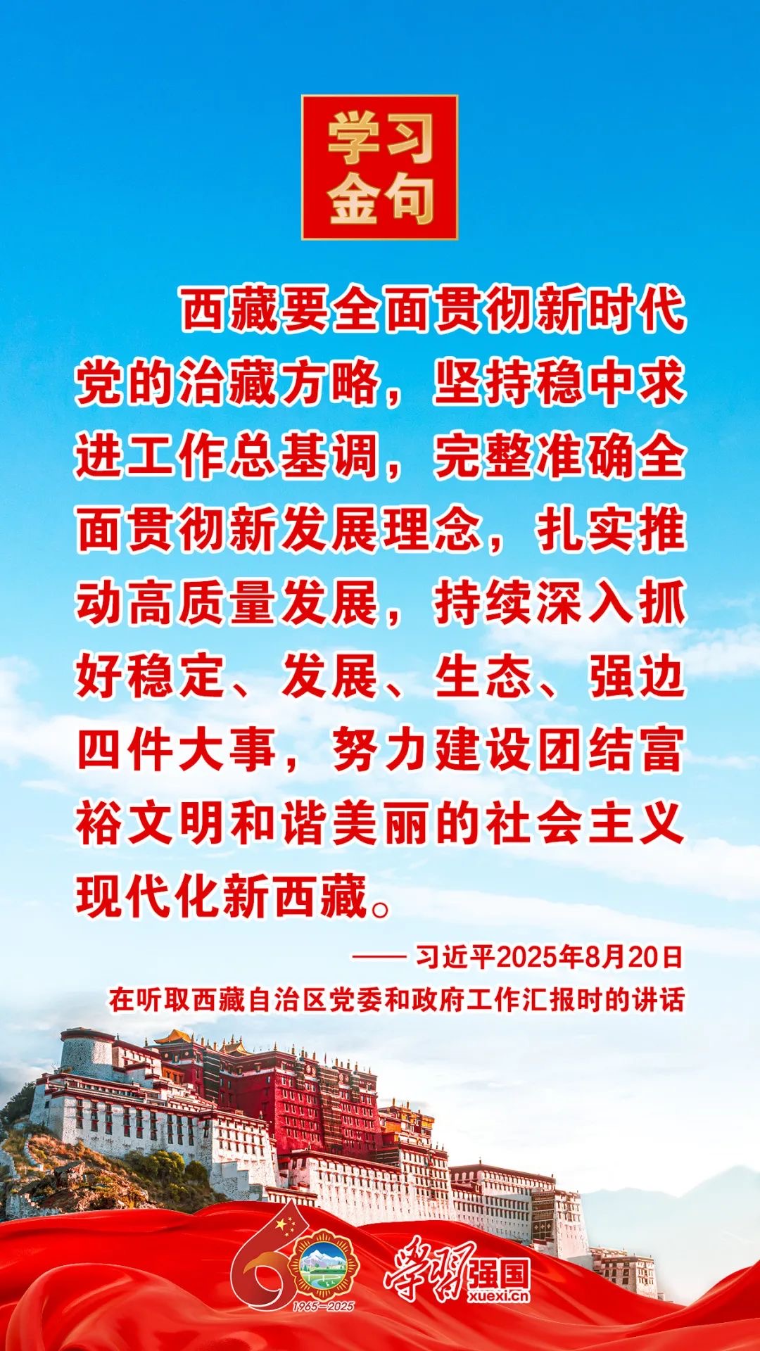 近日,率中央代表团出席西藏自治区成立60周年庆祝活动的中共中央总书记、国家主席、中央军委主席习近平在拉萨听取西藏自治区党委和政府工作汇报,发表了重要讲话。一起来学习!