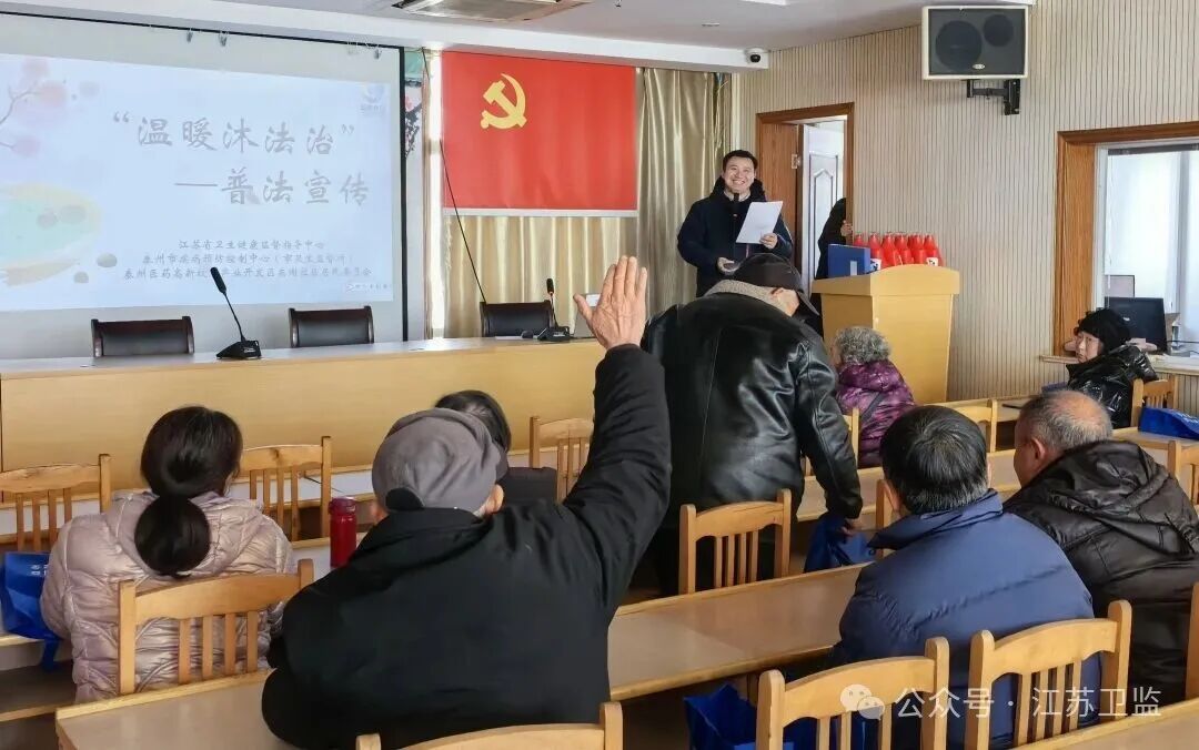 健康知识讲座中,泰州市疾病预防控制中心(市卫生监督所)传染病卫生监督专家陈东周科长向50余名社区居民,开展了以“沐浴场所卫生健康风险与传染病防控——新修订《中华人民共和国传染病防治法》宣贯”为主题的专题讲座。陈科长结合冬季传染病传播特点,用通俗易懂的语言讲解了沐浴场所常见卫生健康风险、传染病防控要点,深入解读了新修订《中华人民共和国传染病防治法》的相关条款。讲座后,活动还通过专家答疑和有奖问答等形式开展互动交流,进一步加深了居民对冬季沐浴健康知识的了解,参加居民均表示受益匪浅。