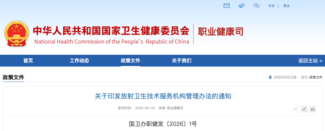 (一)文件施行与废止。《办法》及3个配套附件自2026年4月1日起实施,原卫生部2012年印发的《关于印发<放射卫生技术服务机构管理办法>等文件的通知》(卫监督发〔2012〕25号)的附件1《放射卫生技术服务机构管理办法》同时废止。